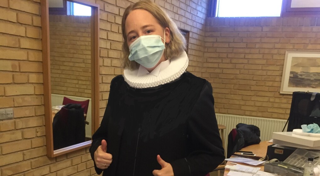 Kjolen er klar, og kraven er pibet. Nu venter nye udfordringer som sognepræst. Privatfoto.