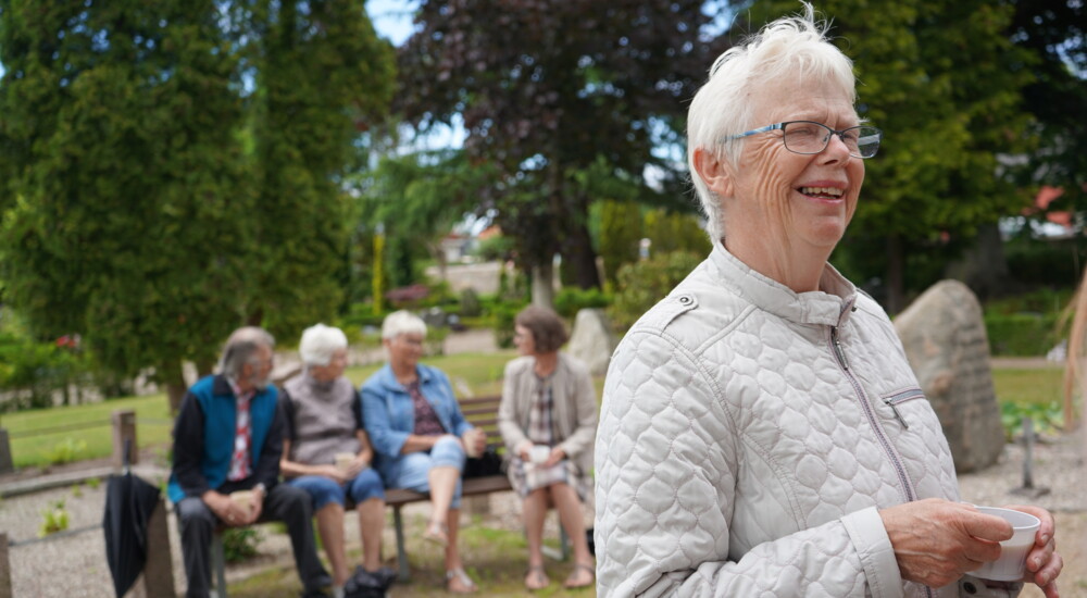 ”Jeg synes, det er et godt initiativ. Det er hyggeligt, for her kan vi sidde og sludre, drikke en kop kaffe og nyde den flotte kirkegård. Det kunne da ikke være bedre.”