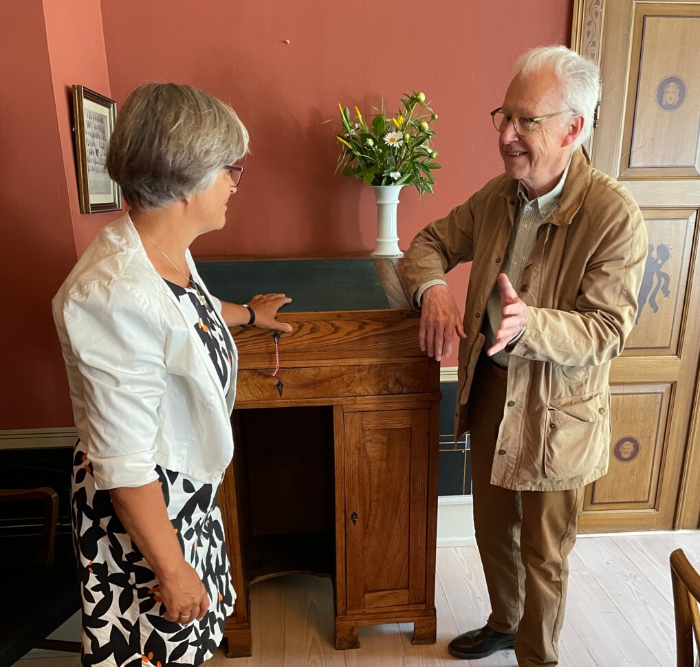 “Det er jo fordi, det er der, den kommer fra. Derfor syntes jeg også, at den skulle hjem igen,” siger 80-årige Claus Harttung, der til daglig bor i Flensborg, hvor skrivepulten også har stået indtil nu.