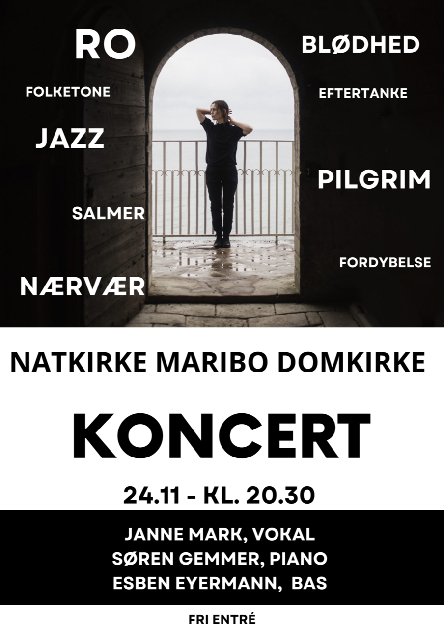 Midt på aftenen er der koncert ved jazzmusikerne Janne Mark (vokal), Søren Gemmer (klaver) og Esben Eyermann (bas). Det er musik af meget høj kvalitet, som nærmest smyger sig om søjlerne og inviterer til at slappe af og finde ro. Janne Mark har med sin særlige nordiske salmestil skabt sig en international karriere med albumudgivelserne "Pilgrim" og Kontinent" på det anerkendte tyske pladeselskab for moderne europæisk jazz ACT. Hun er bidragyder til Højskolesangbogen 19. udgave, "Højskolesangbogen for børn", "Kirkesangbogen" og "100 salmer". Janne Mark er musikudvikler ved Brorsons kirke i København.
