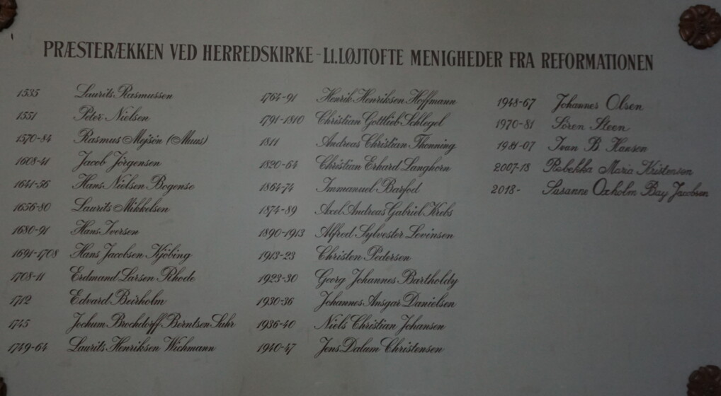 Tavlen med præsteindsættelser i Herredskirke Kirke - fra 1535 til 2018