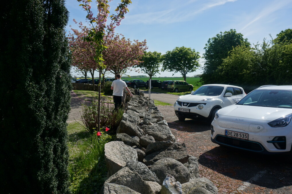 Parkeringspladsen foran Herredskirke Kirke med flere biler end der har været længe.