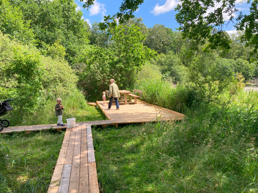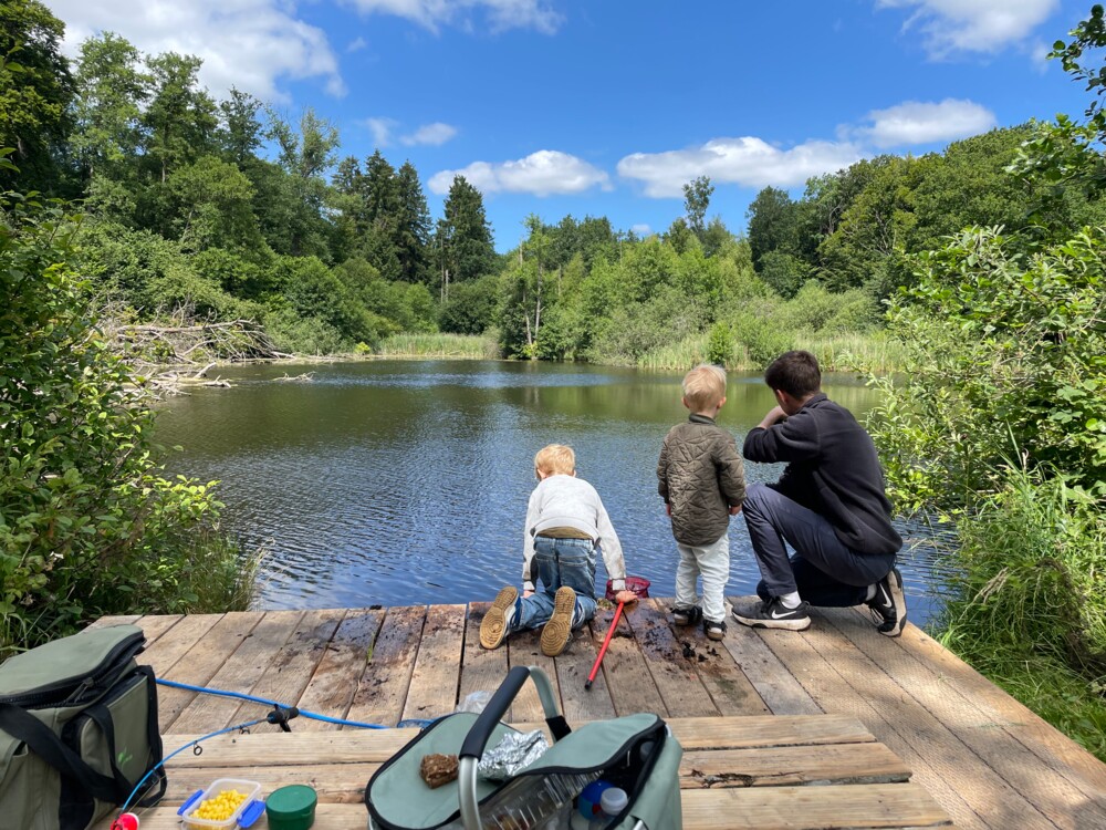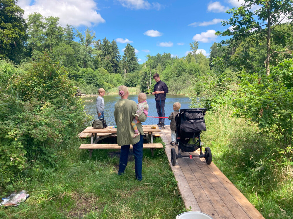 I dag har Cecilie og Nicolai Grønborg fra Systofte fundet vej til det nye område. To af parrets børn på halvandet og 3 år render rundt og hygger på en af platformene, mens den ældste på 8 år fisker med sin far.