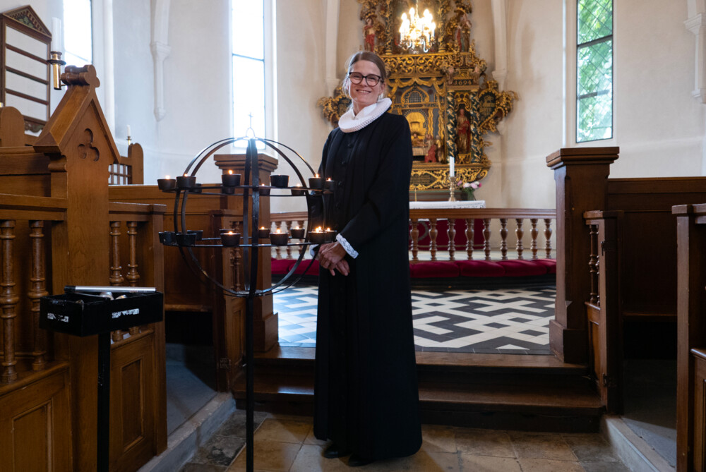 ”Fokus i denne gudstjeneste er jo ro. Det handler om at skabe rammerne for eftertanke eller måske ingen tanker overhovedet, og derfor er den rituelle ramme vigtig. Det virker også for mig selv. Så snart jeg hører ”Aftenrøde over tage,” så er jeg til stede her og ved præcis, hvad der venter, siger Ida Støckel Rolle.
