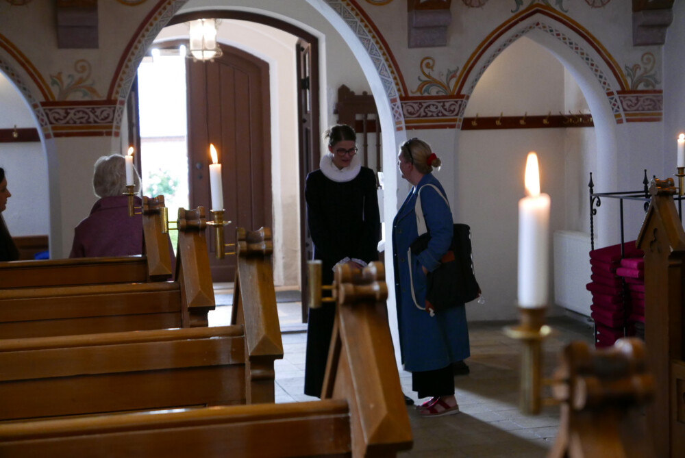 Det er torsdag den 19. juni kl. 19, det er tæt på midsommer og stadig lyst, da sognepræst Ida Støckel Rolle tager i mod i døren til Nysted Kirke. Iført præstekjole giver hun hånd til gæsterne, når de ankommer. Da alle har fundet sig en plads, lyder kirkeklokkens tre bedeslag – men her hører ligheden med den sædvanlige højmesse om søndagen også op.