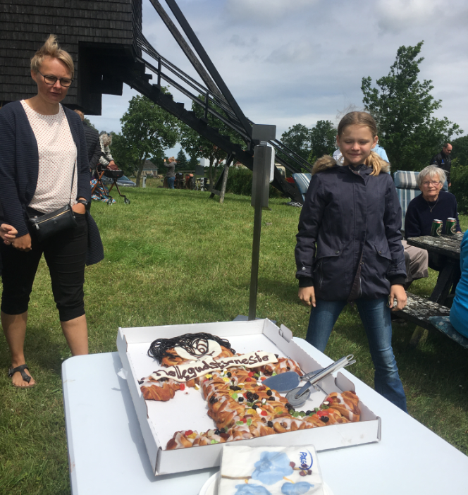 Formålet med møllegudstjenesten og mølledagen er hvert år at kunne samles i det fri og nyde møllen i funktion, naturen og fællesskabet for både børn og voksne. I år skulle vi fejre, at det var det 15. år siden vi startede, og det gjorde vi ved at spise kagemand og -kone fra bageren.