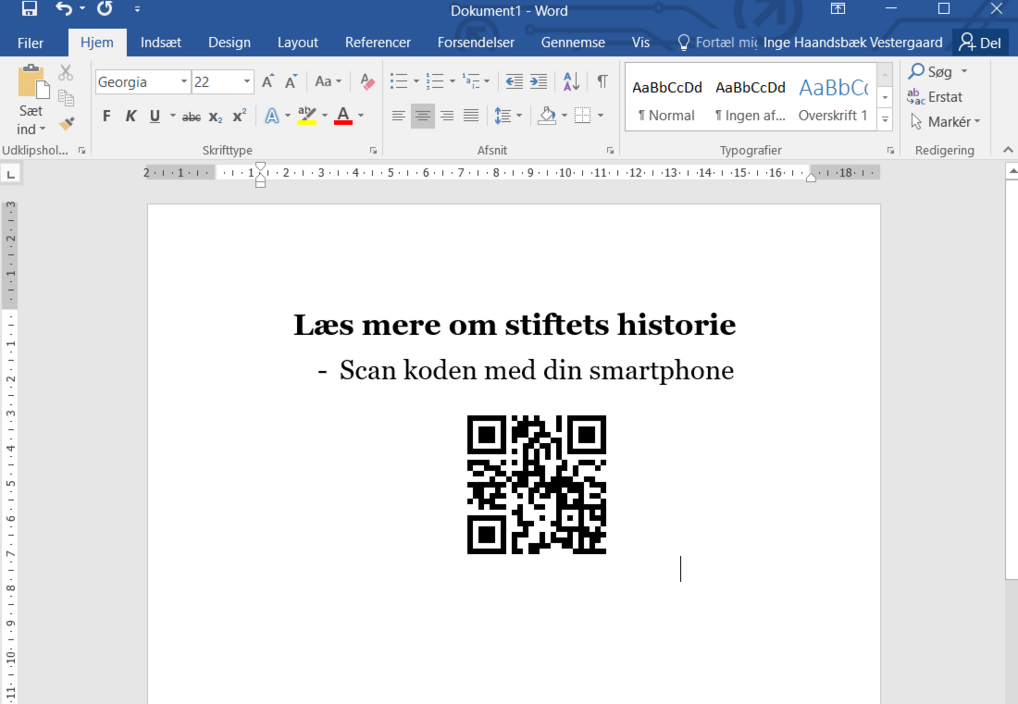 Brug word eller andet redigeringsprogram til at lave en plakat, hvor du skriver lidt om, hvad man kan læse eller se, og at den besøgende skal scanne koden med sin smartphone. Plakat kan du printe, laminere og hænge op i kirken.