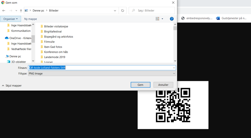 Her følger en guide til, hvordan du med få enkle trin kan installere en QR-kode. Den kode, du får, kan enten bruges på skilte eller blot sættes ind i et word-dokument, som printes ud, lamineres og hænges op i kirken eller på kirkegården.