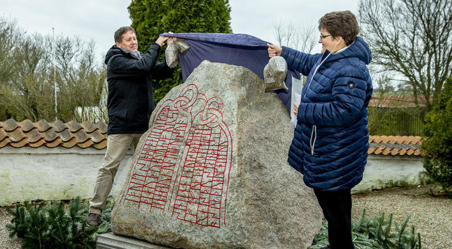 Danmarks næststørste runesten er nu tilbage, hvor den kommer fra, nemlig Tirsted - dog i kopiudgave. Stenen er nu nomineret til stiftets initiativpris