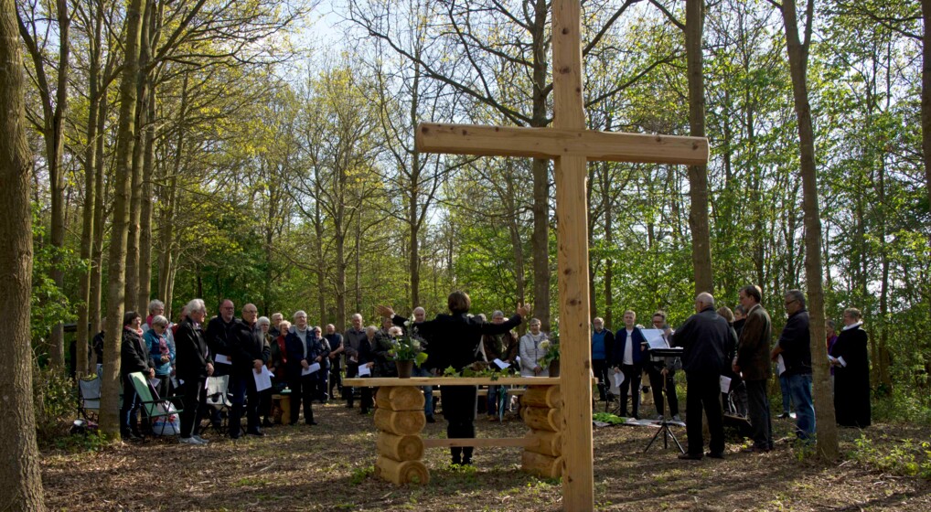 Nu er det igen muligt at holde udendørs gudstjenester med flere deltagere - som her i Skovkirken i Karlelunden. Arkivfoto: Lars Havn Eriksen