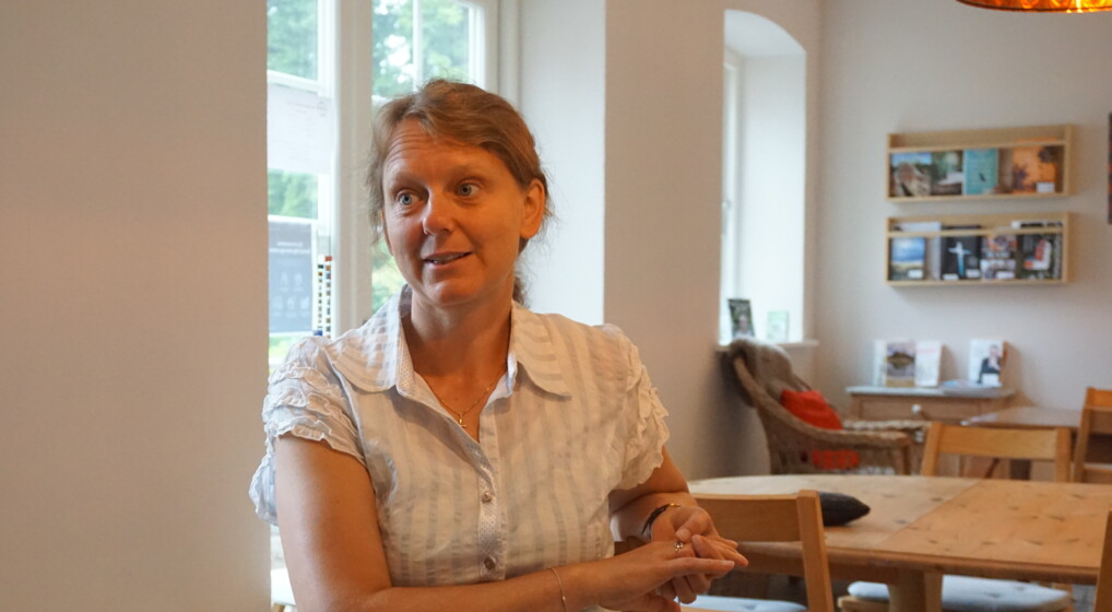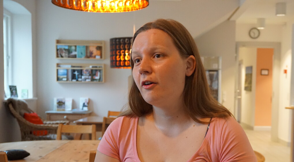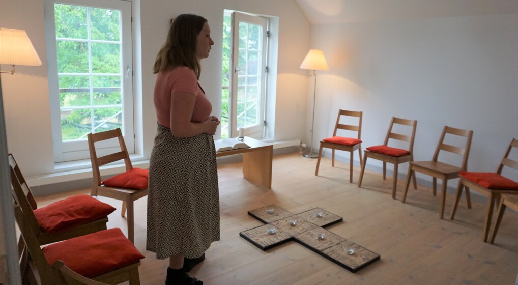 Volontør Hildur Kaaber Ahrenkilde fortæller om sine oplevelser i brugen af Pilgrimshusets andagtsrum.