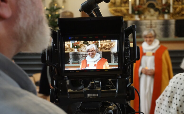 Biskop Marianne Gaarden til optagelse af nytårsgudstjenesten i Maribo Domkirke 2024